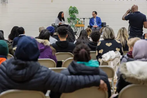The moderated conversation was led by nearby Elsie MacGill HS Vice Principal Alexiis Stephen, who invited students to ask questions. Students listened intently as Hill spoke candidly about his writing process, the themes explored in his work and the powerful role books can play in a young person’s life.
