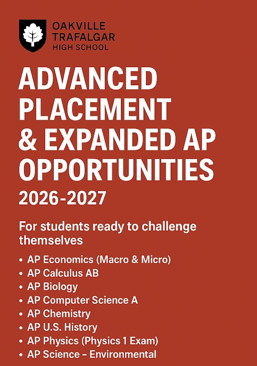 Advanced Placement Courses and Examinations align with Oakville Trafalgar High School’s tradition of excellence since 1908.
