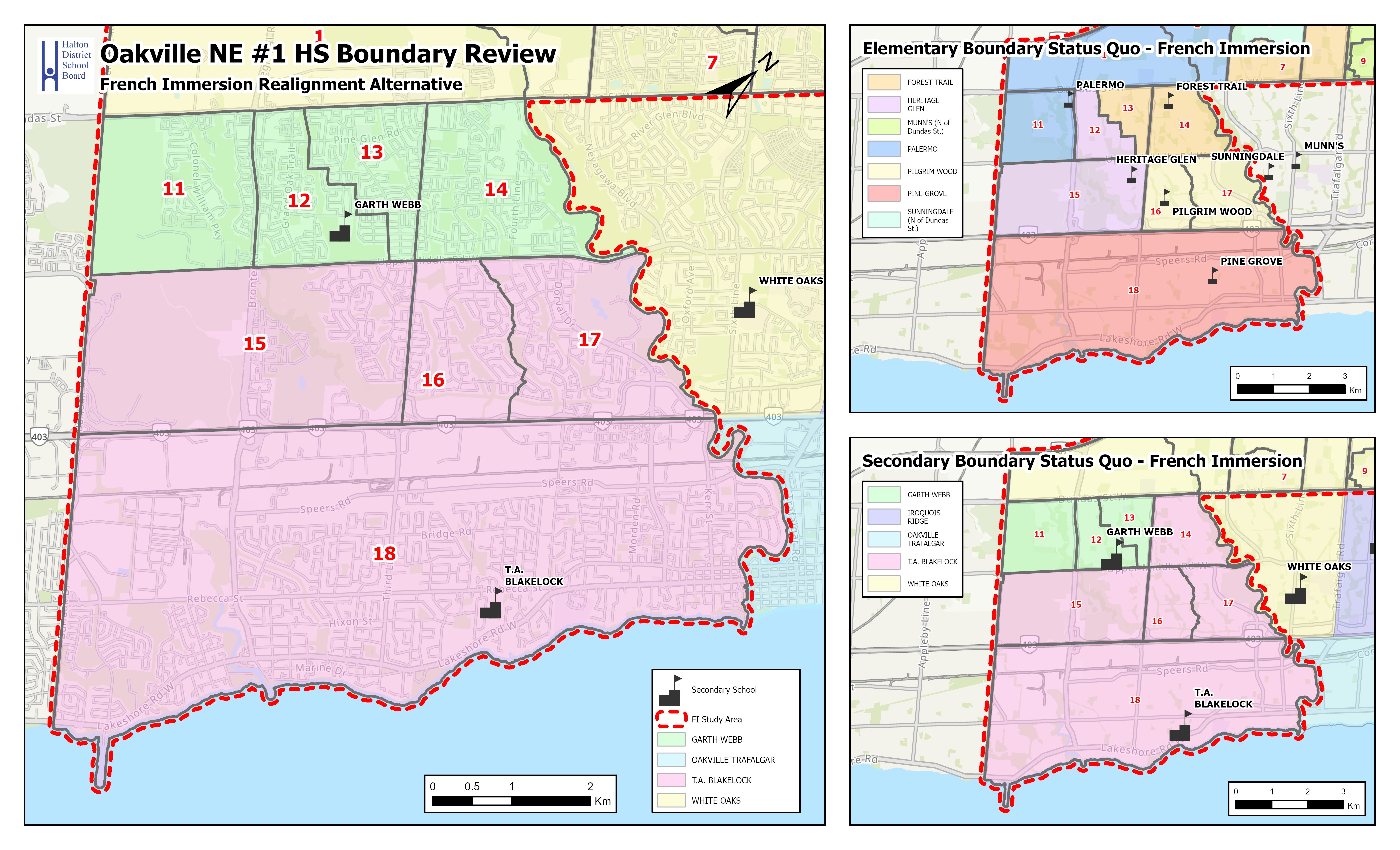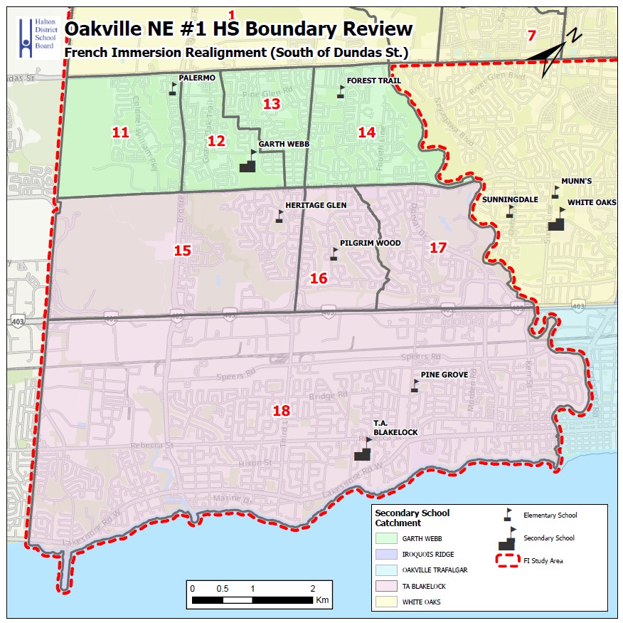 - Pathway #1: Oakville NE #1 HS Boundary Review review north of Dundas Road East to establish the boundaries for the English and French Immersion programs; and,