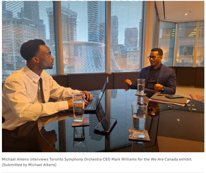 Grade 11 TAB student Michael Ekeng participated in the We Are Canada exhibit, a student-led photo and essay exhibition that celebrates 50 influential Black professionals from across the GTA in recognition of Black History Month. Michael also interviewed Mark Williams, the CEO of the Toronto Symhony Orchestra. The interview was featured on the CBC radio show "Here and Now" with Farrah Merali.