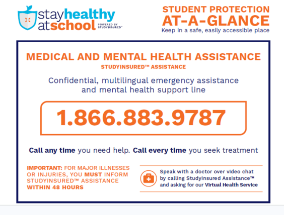 If students are missing any of the school vaccines, please also connect with StudyInsured Health Insurance at 1-866-883-9798 to have StudyInsured evaluate students vaccination records, and recommend which Doctor and Clinic to visit.